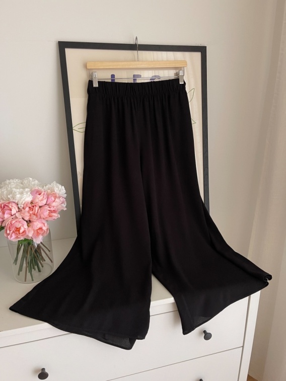 Czarne kuloty na gumkę, posiadają sznurek do wiązania a pasie oraz kieszene.