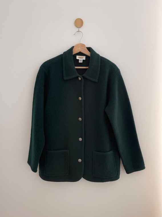 Miękka i ciepła ciemniozielona marynarka z wełny. Sprawdzi się też jako lekka kurtka na wiosnę.